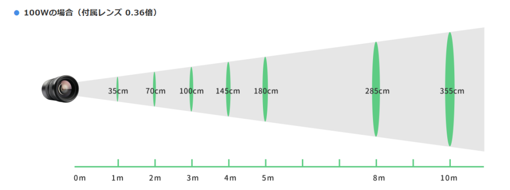 ・100Wの場合(付属レンズ 0.36倍)